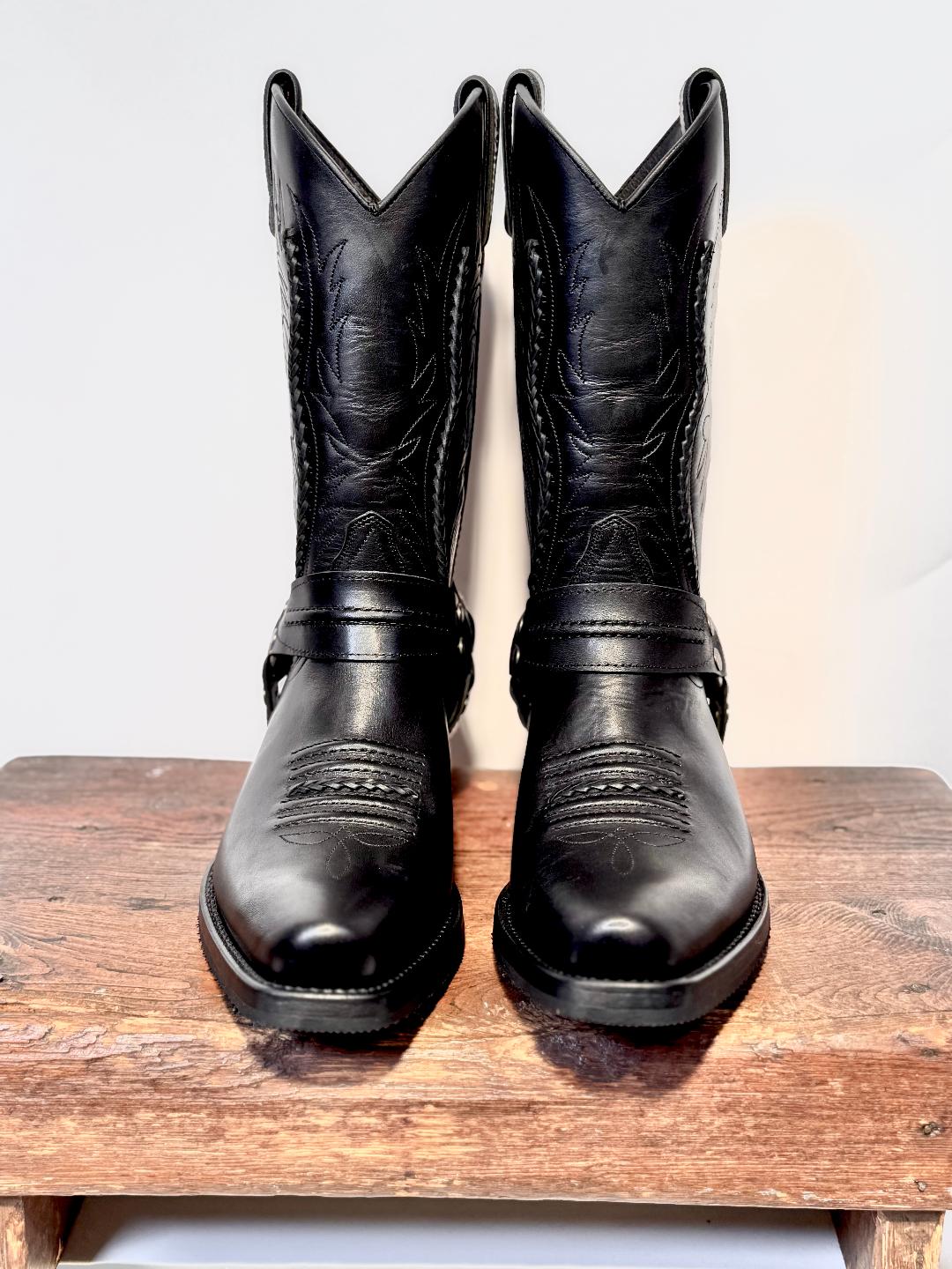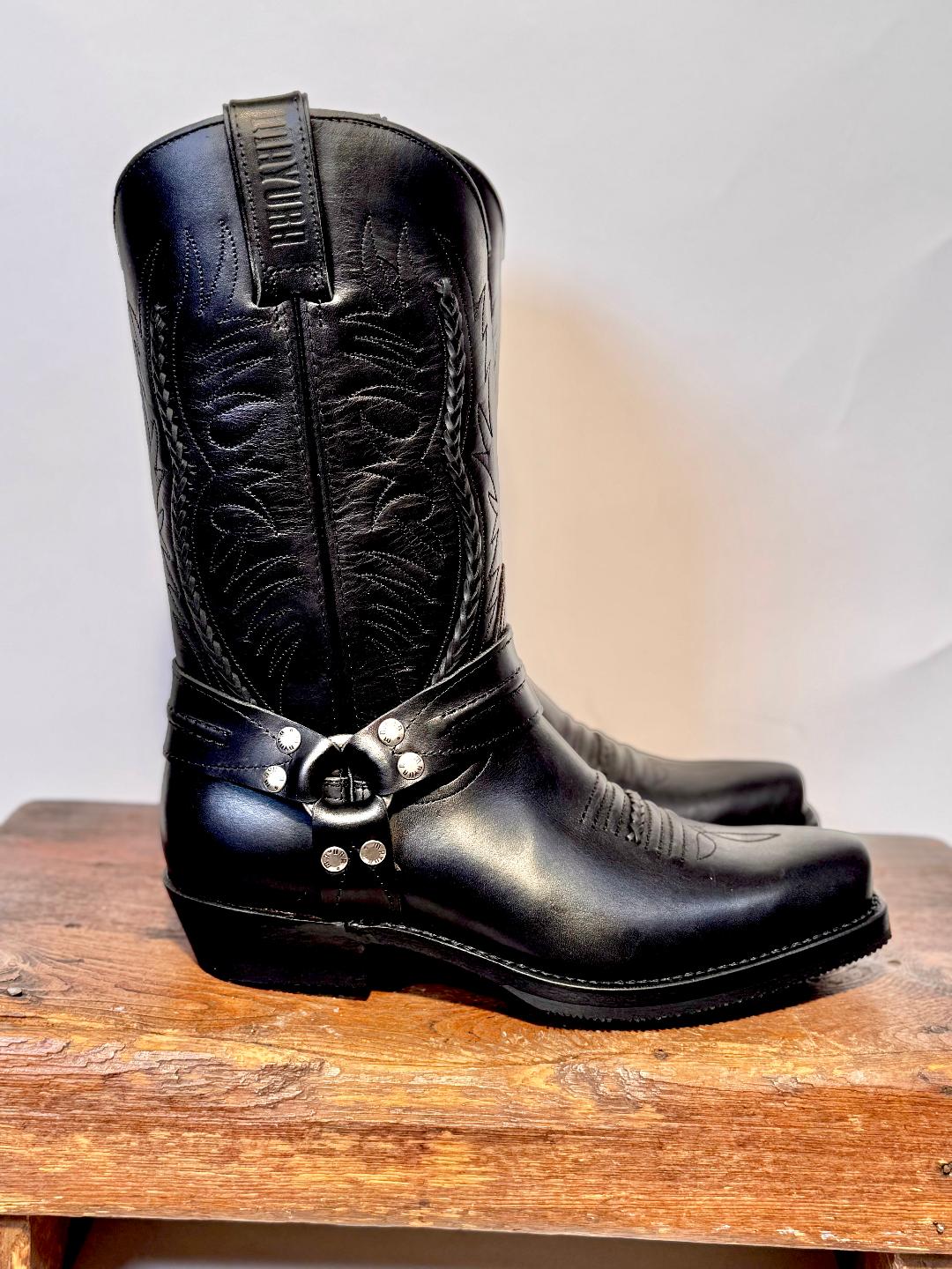 Denne langskaftede model er lidt et mix mellem den klassiske cowboy- og bikerstil med sin let kantede snude og samtidig stadig slank i foden.