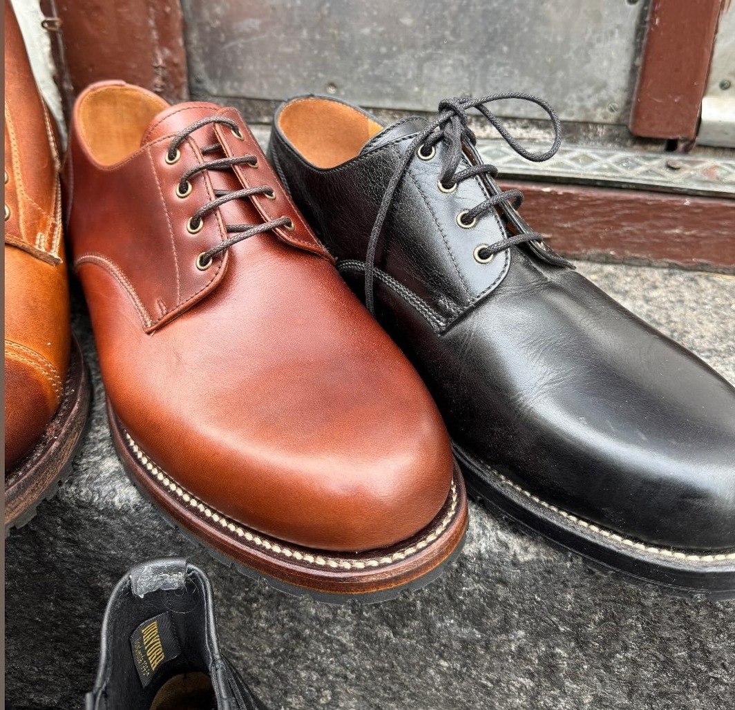Randsyet på lædersål med gummislidbane for ekstra holdbarhed og komfort.